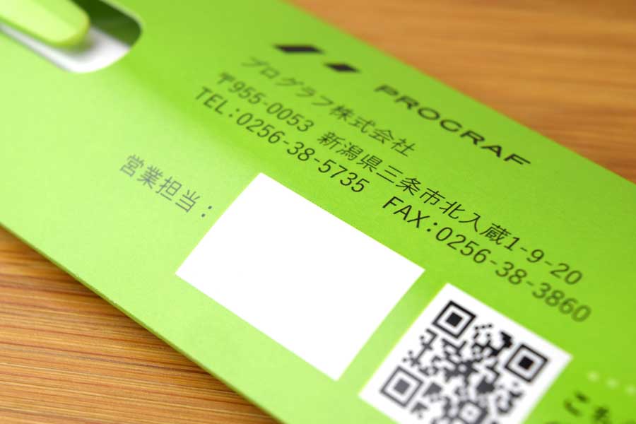 表面にはPRしたいこと(例えば「〇〇ならお任せください!」などのチラシで言うキャッチ部分)を入れて、裏面には会社情報+営業担当を明記する欄を設ける。