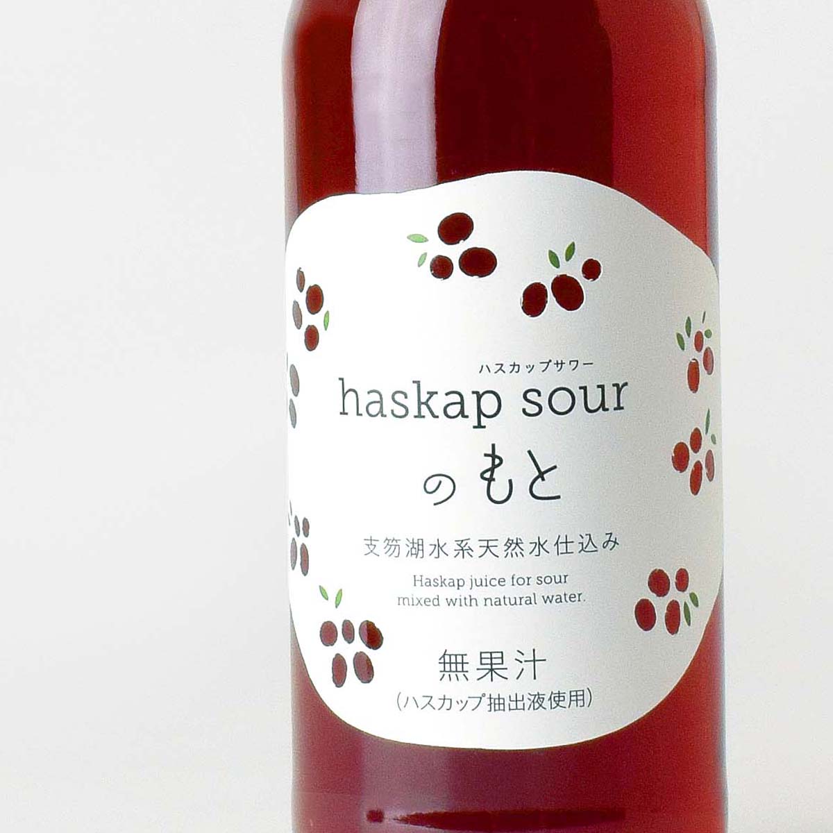 ラベルにハスカップの形で穴があいており、中身の色がラベルのハスカップの色をそのまま表します。