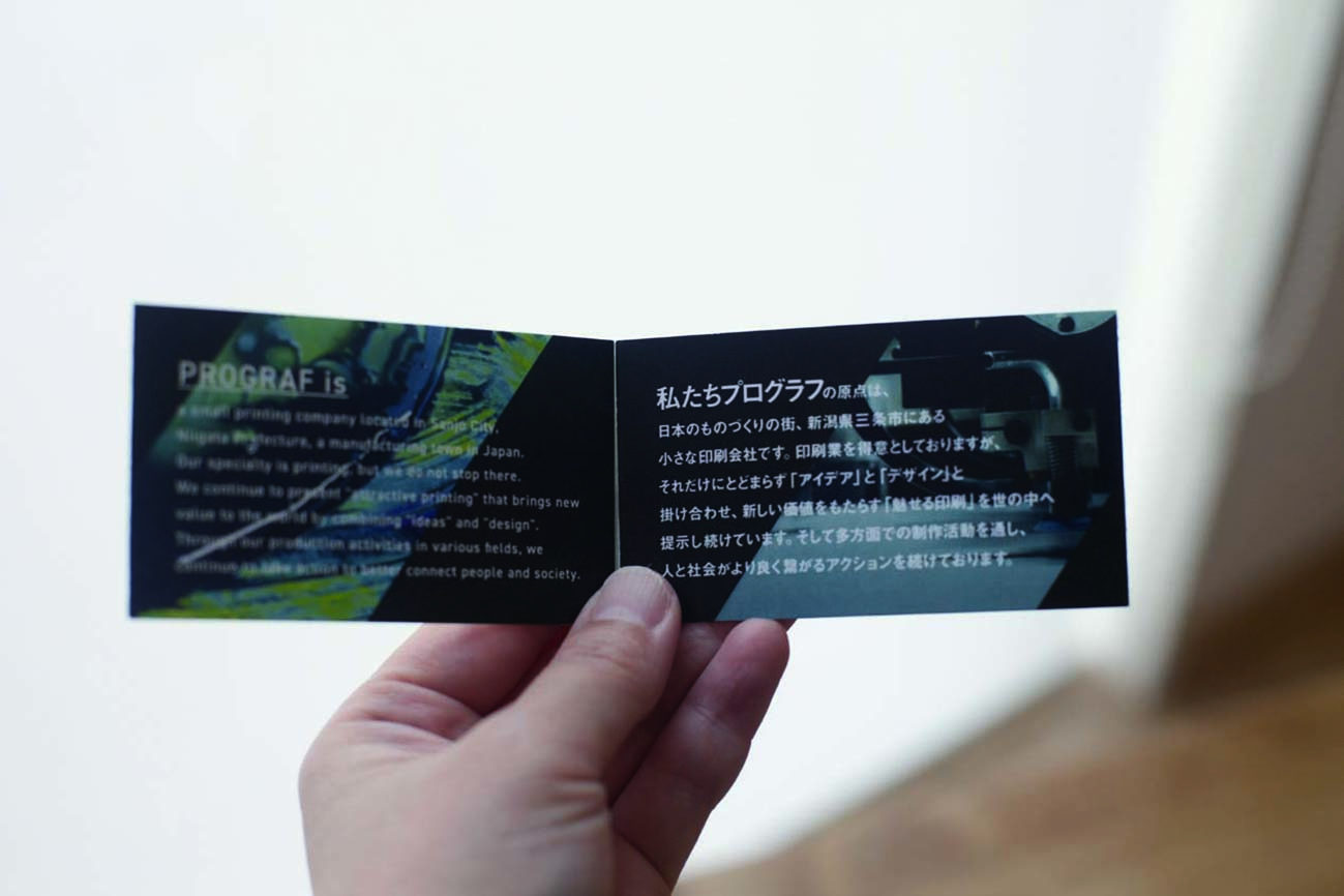 プログラフ株式会社の名刺がわりの小さなフライヤー。