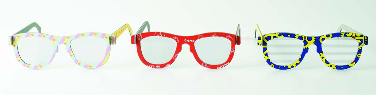 紙製のメガネプレームに着せ替えシールを貼るワークショップの為のシールデザイン。