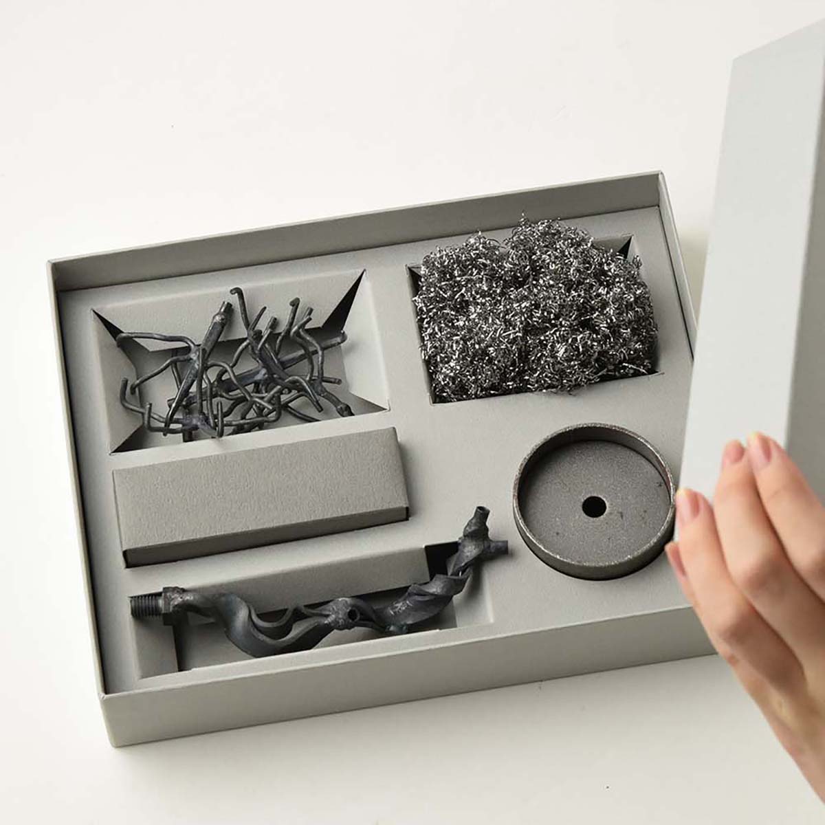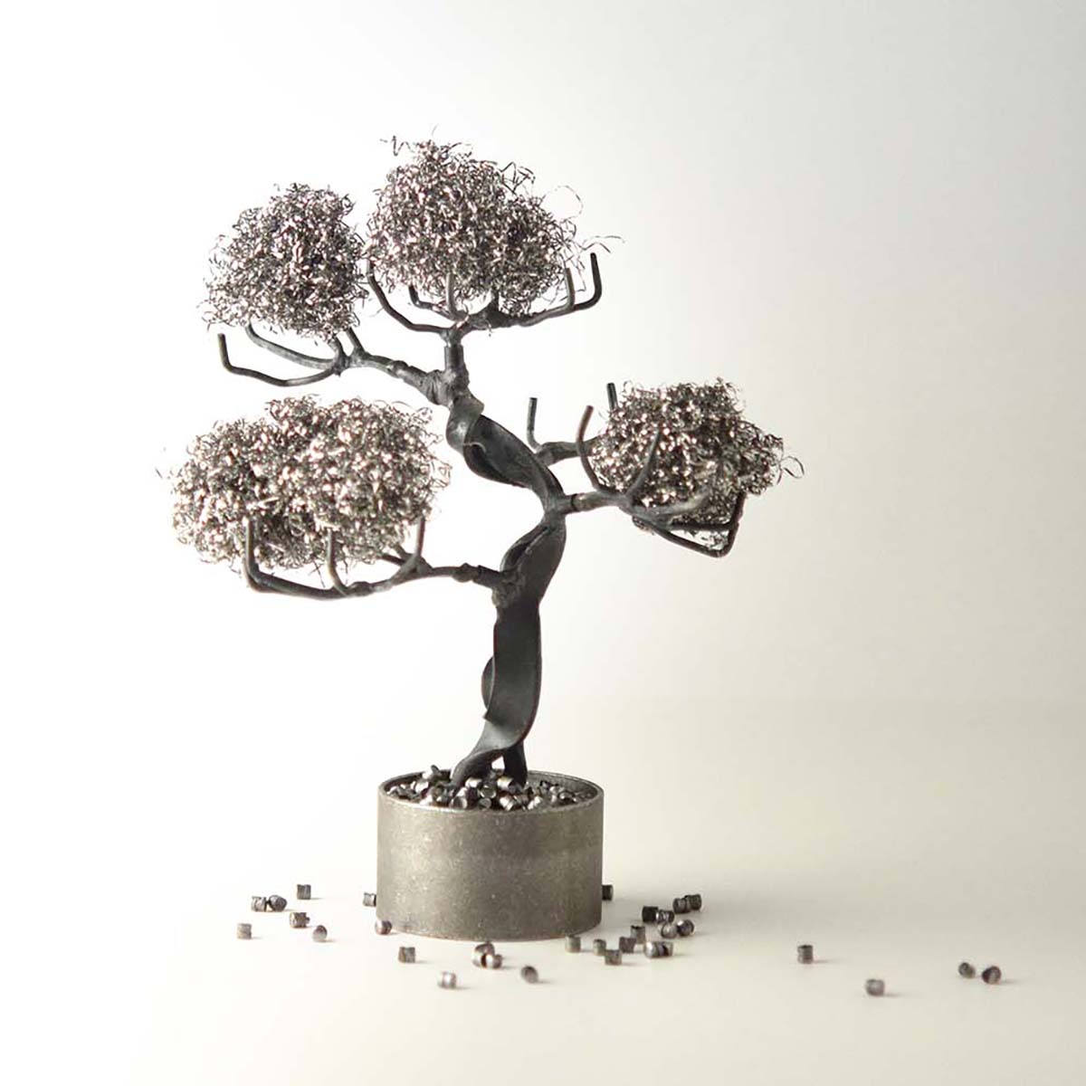 直感的に組み立てながら盆栽への見立て、金属の経年変化を粋に楽しめるオブジェです。